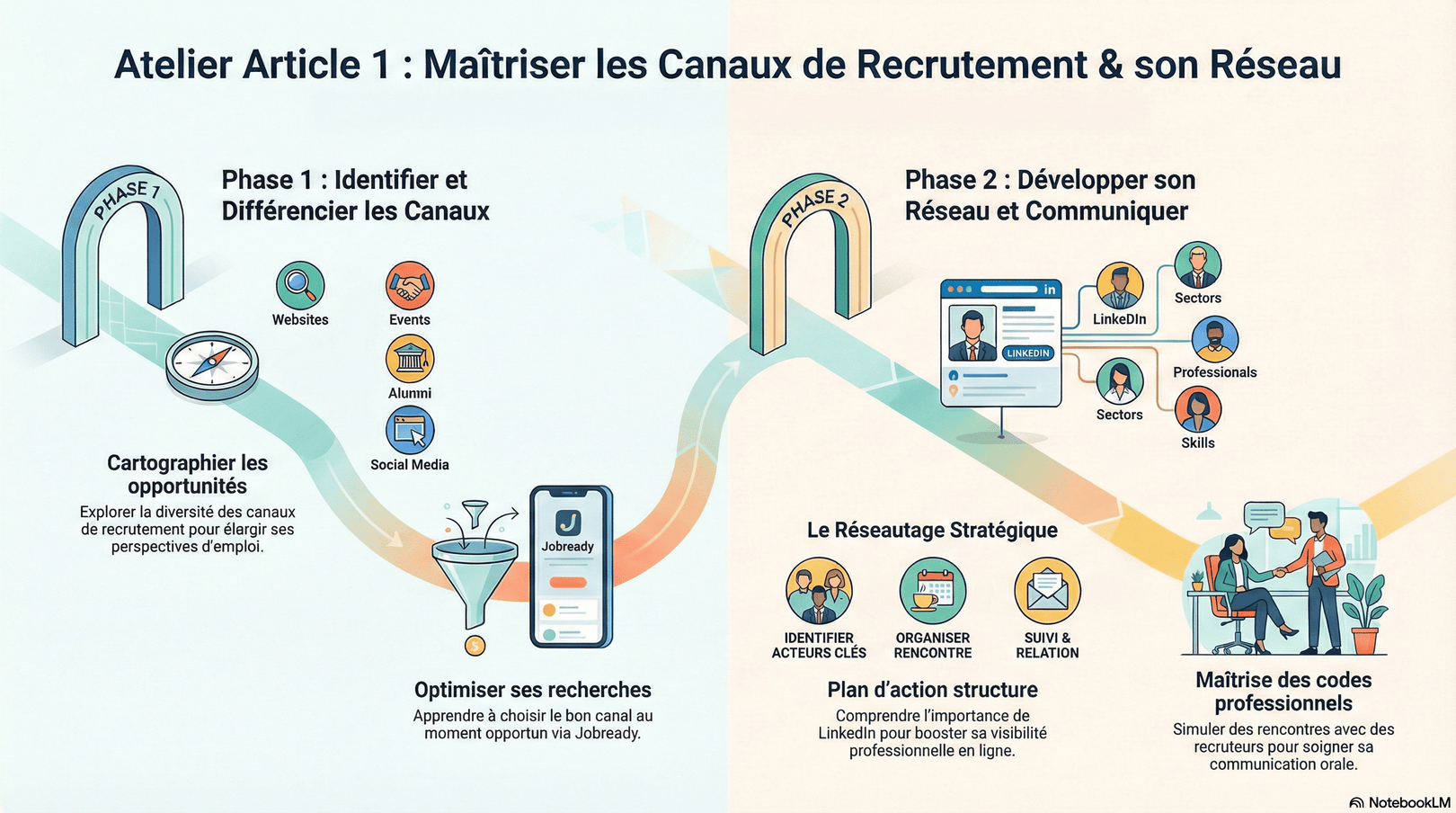 la découverte et la différenciation des principaux canaux de recrutement (offres en ligne, candidatures spontanées, réseaux, salons, plateformes spécialisées),