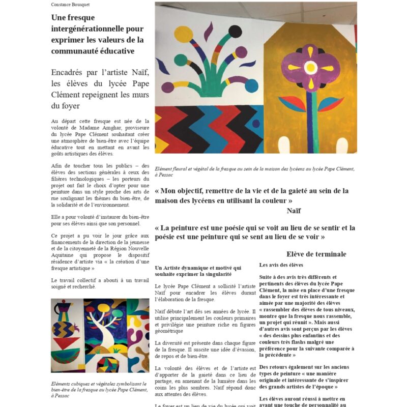 Rendez-vous le 21 avril à 12h à la maison des lycéens pour l’inauguration de la fresque.